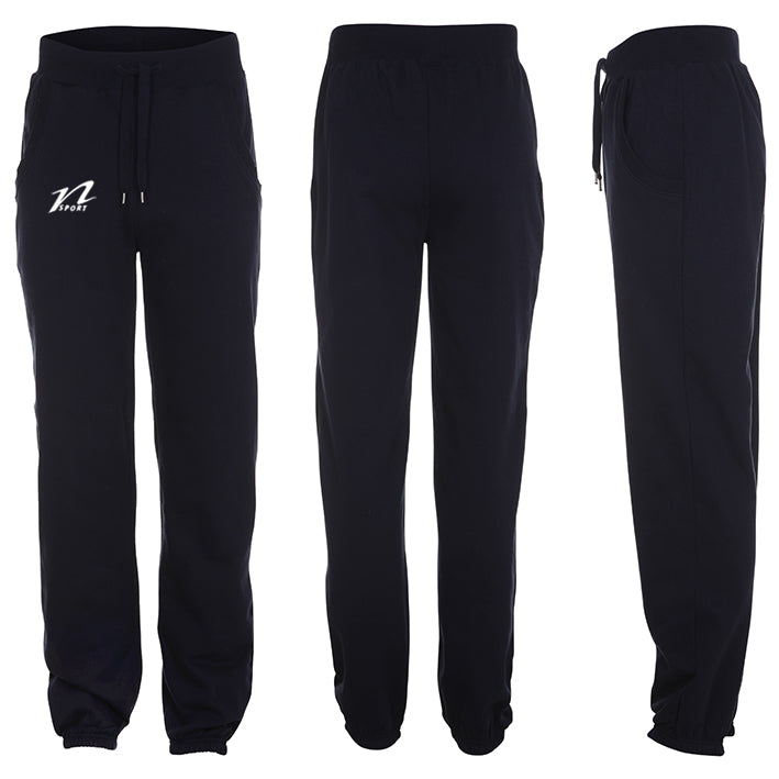 Joggingbukser i kraftig kvalitet med bred lycra rib med elastik og snor i talje.